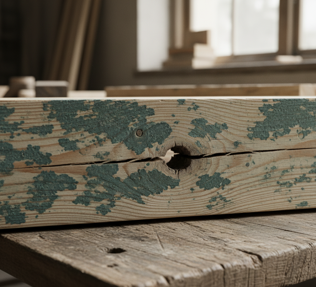 Сырой брус (влажность 25–30% и выше) может привести к: